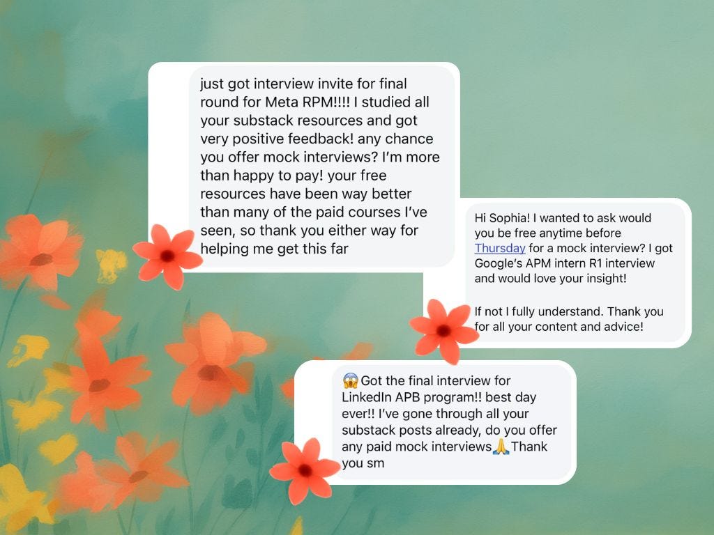 Each interviewee will go through 1 product sense interview question, and I’ll share live feedback after each interview.